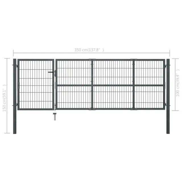 Naša jeklena vrata za ograjo bodo predstavljala idealen vhod za ograjo, ki obdaja vaš vrt ali dvorišče. Ta močna in trpežna vrtna vrata so izdelana iz trpežnega jekla s prašnim premazom. Odporna so na rjavenje in korozijo ter primerna za dolgotrajno uporabo na prostem. Varjena so z debelimi mrežnimi žicami, ki zagotavljajo dodatno togost, zato bodo naša vrtna vrata zagotovila visoko raven varnosti in hkrati ustvarila čudovit vhod na vašo posest. Vrata imajo priložene stebričke in tri ujemajoče se ključe za vgrajeno ključavnico.Barva: AntracitnaMaterial: Jeklo s prašnim premazomCelotna velikost: 350 x 150 cm (Š x V)Višina panela: 100 cmDimenzije stebrička: 6 x 6 x 0,2 cm (Š x G x D)Velikost mreže: 5 x 20 cm (Š x V)Priloženi 3 ključi 144399