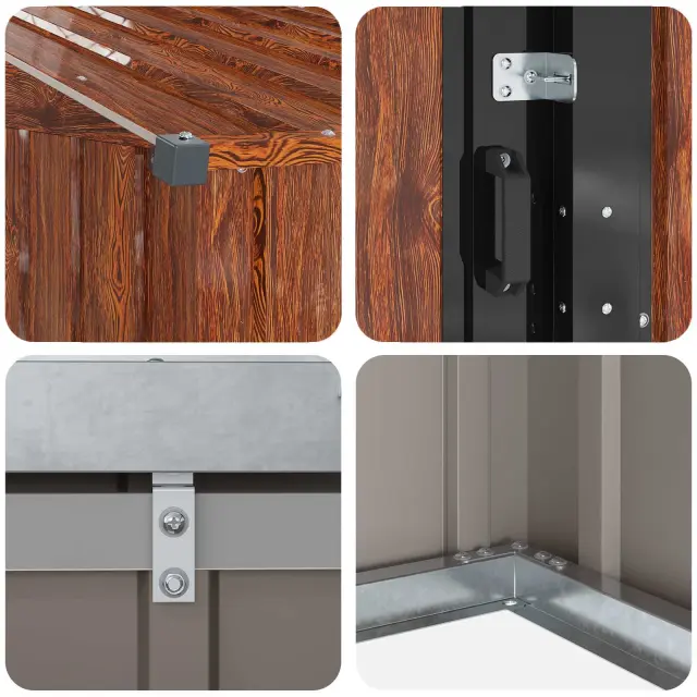 Ta kovinska vrtna hiška je pravi primer funkcionalnega dizajna in modernih trendov, ki nudita trden prostor za shranjevanje vseh vaših zunanjih reči. Njena pravokotna oblika in elegantne linije se brez težav prilegajo kateremukoli vrtu ali terasi, hkrati pa nudijo prostor ne le za vrtnarska orodja, ampak tudi za dvig estetskega videza vašega zunanjega prostora s svojim modernim stilom.