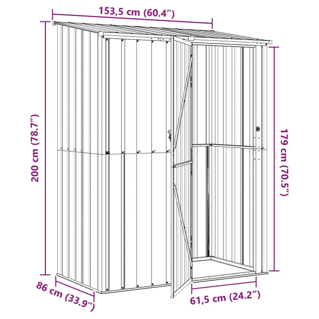 vidaXL Vrtne hiške Rjava 153,5 x 86 x 200 cm Kovina