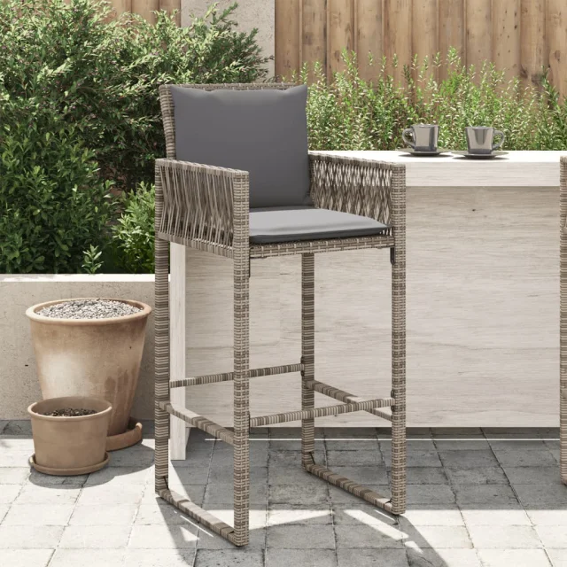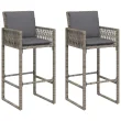 vidaXL Vrtni barski stolčki z blazinami 2 kosa siv poli ratan