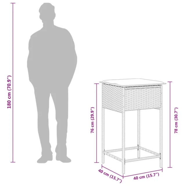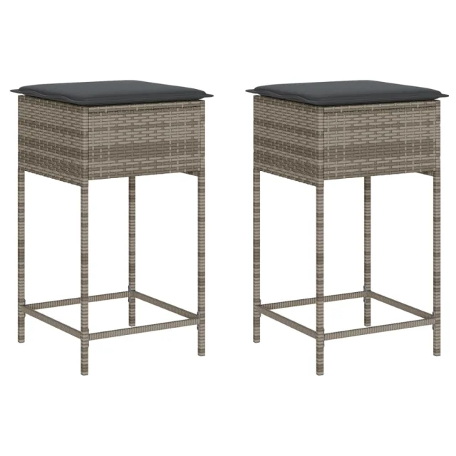 vidaXL Vrtni barski stolčki z blazinami 2 kosa siv poli ratan