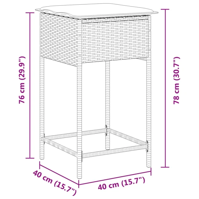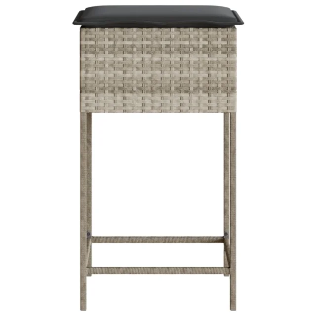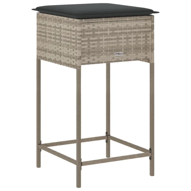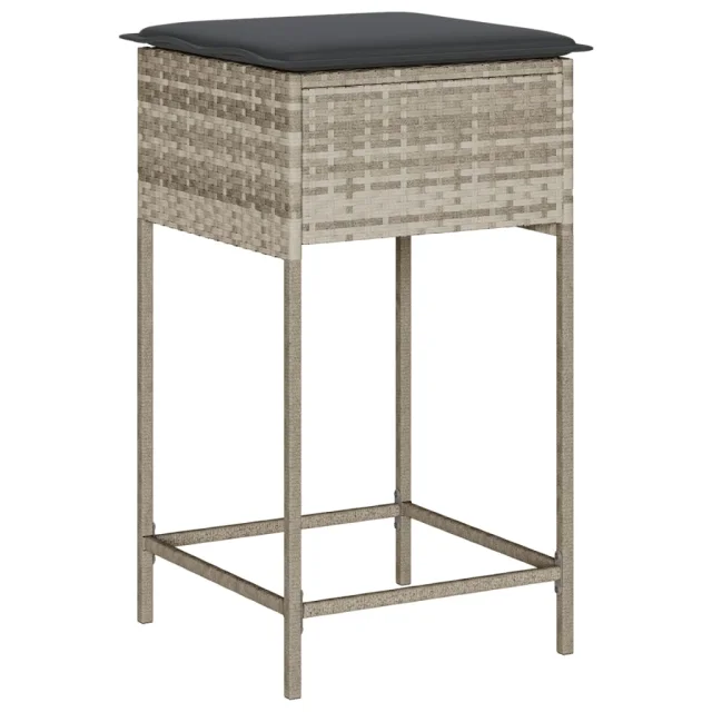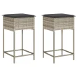 vidaXL Vrtni barski stolčki z blazinami 2 kosa svetlo siv poli ratan