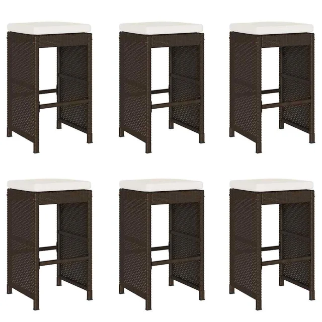 vidaXL Vrtni barski stolčki z blazinami 6 kosov rjav poli ratan