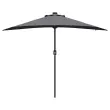 • Funkcije / Oblikovanje: Zložljiva zasnova olajša shranjevanje, ko dežnik ni v uporabi. Ročna veja omogoča enostavno odpiranje, kar povečuje udobnost. Solarne LED luči nudijo osvetlitev ponoči brez potrebe po električni energiji.