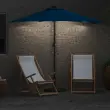 • Funkcije / Oblikovanje: Zložljiva zasnova olajša shranjevanje, ko dežnik ni v uporabi. Ročna veja omogoča enostavno odpiranje, kar povečuje udobnost. Solarne LED luči nudijo osvetlitev ponoči brez potrebe po električni energiji.