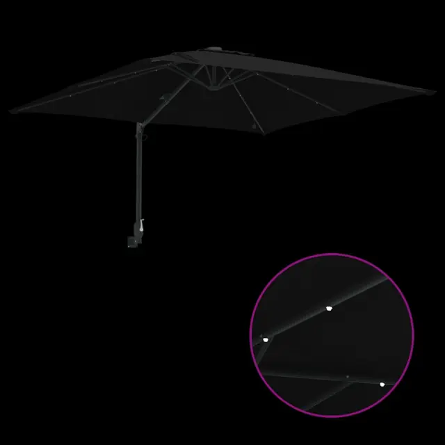 • LED osvetlitev Osvetli svoje zunanje večere s priloženimi LED trakovi pod dežnikom. Ti napeljujo se s sončno energijo ali baterijami in ustvarjajo toplo vzdušje, kar ti omogoča daljše uživanje na prostem ob čudoviti svetlobi in boljšem vidu.