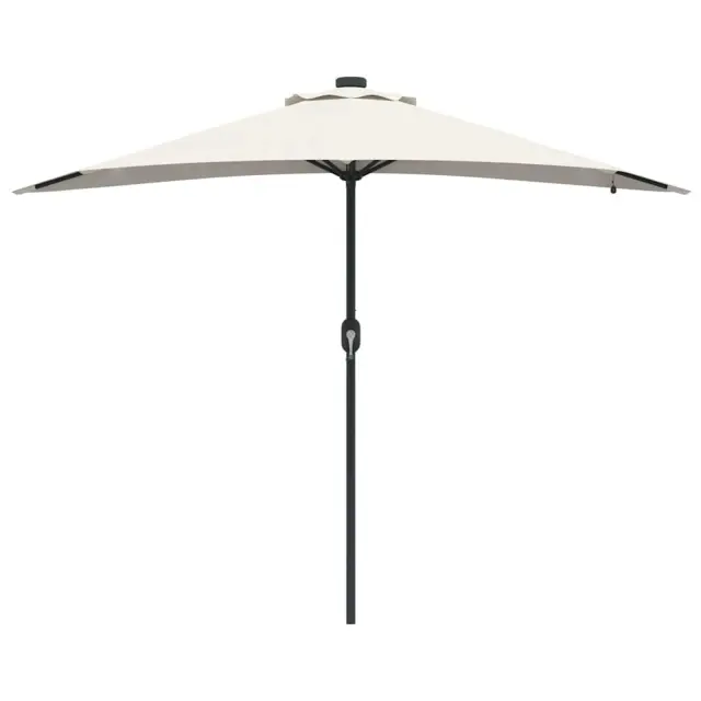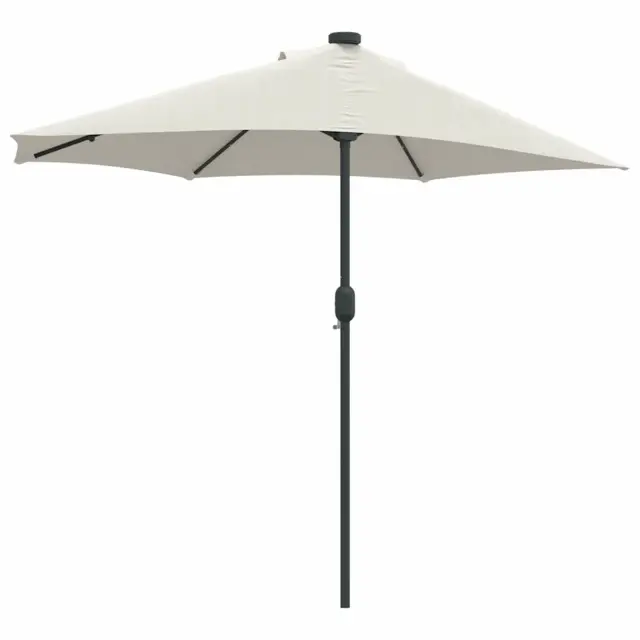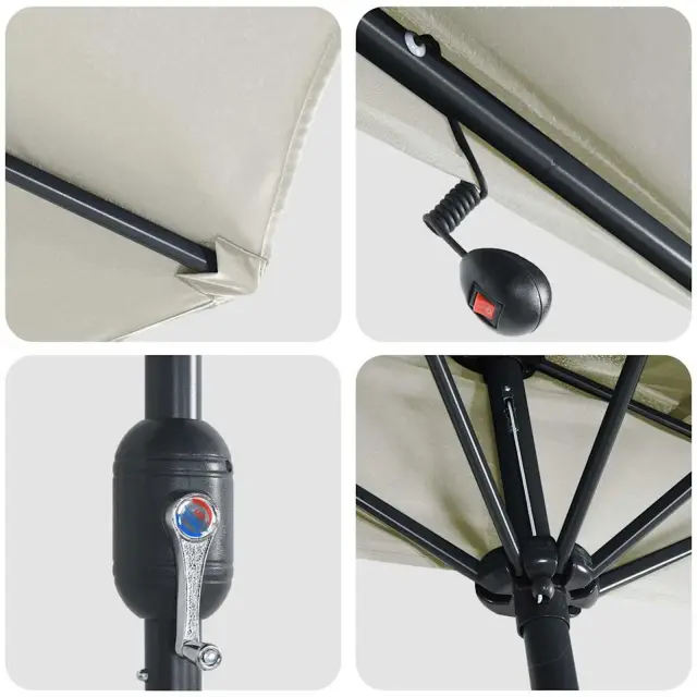 • Vključene komponente: Ta vrtni dežnik ima ročno vejo in zložljiv mehanizem za hitro odpiranje in enostavno shranjevanje. Ima tudi solarne LED luči na spodnji strani, ki ustvarjajo prijetno vzdušje med večernimi srečanji.