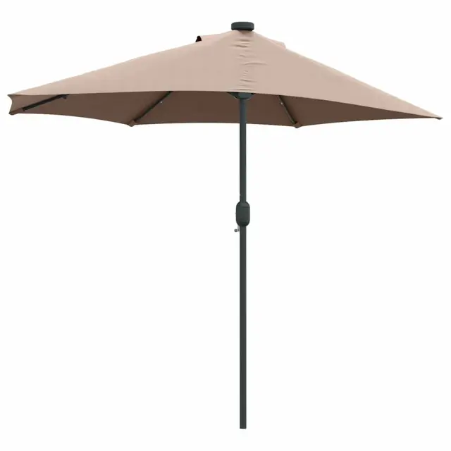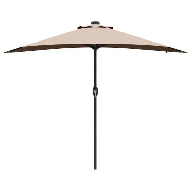 • Vključene komponente: Ta vrtni dežnik ima ročno vejo in zložljiv mehanizem za hitro odpiranje in enostavno shranjevanje. Ima tudi solarne LED luči na spodnji strani, ki ustvarjajo prijetno vzdušje med večernimi srečanji.