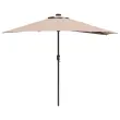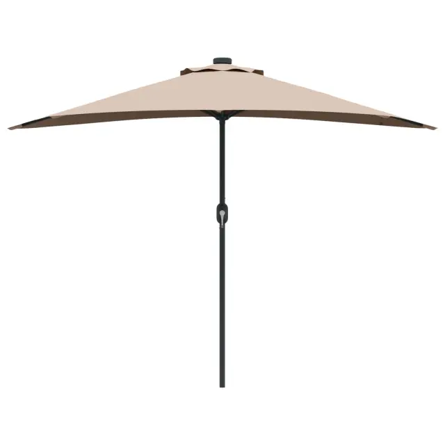 • LED osvetlitev: LED lučke so nameščene na spodnjem delu dežnika, kar ustvarja čarobno osvetljen večerni ambient. Te lučke bodo obogatile vaša večerna srečanja, saj ponujajo lepo osvetlitev, ki podaljšuje užitek na prostem tudi po mraku. In kar je najbolje, delujejo na solarno energijo.