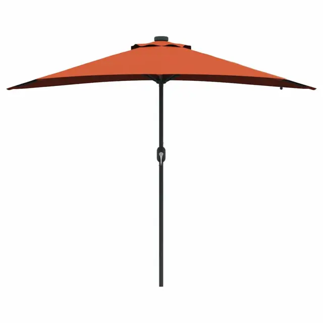 • Vključene komponente: Ta vrtni dežnik ima ročno vejo in zložljiv mehanizem za hitro odpiranje in enostavno shranjevanje. Ima tudi solarne LED luči na spodnji strani, ki ustvarjajo prijetno vzdušje med večernimi srečanji.