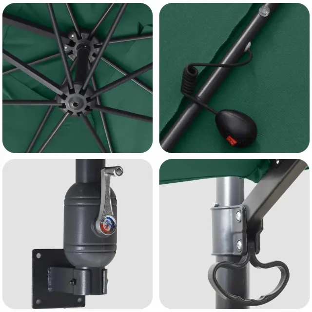 Ta moderen vrtni dežnik je prava mešanica funkcionalnosti in stila za tvoje zunanje prostore. Zasnovan za vrtove in terase, ta prostostoječi dežnik ti nudi obilo sence in kanček elegance. Njegov preprosto sodoben stil se dobro poda v različne teme zunanjega dekorja, zato je primeren za vse priložnosti – od zabav v vrtu do mirnih popoldnevov pod soncem.