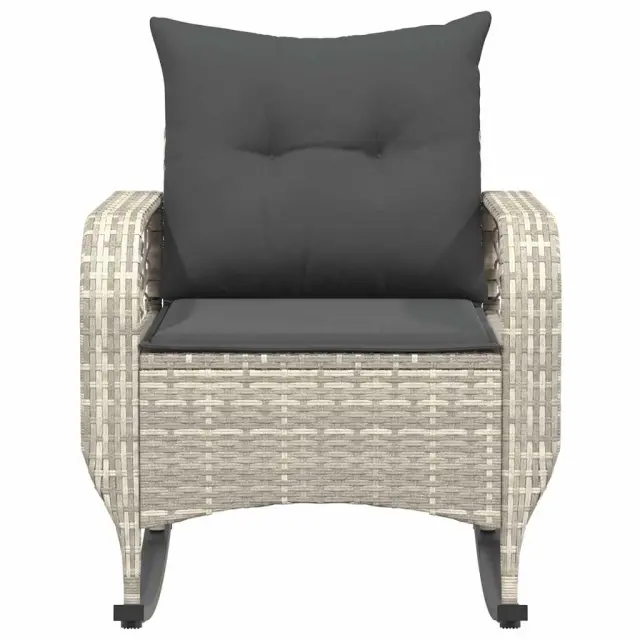 vidaXL Vrtni gugalni stol z blazinami svetlo siv poli ratan