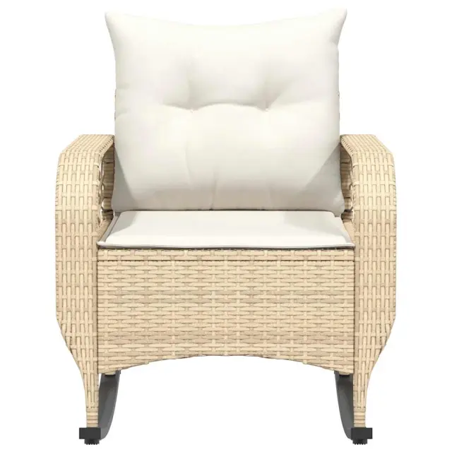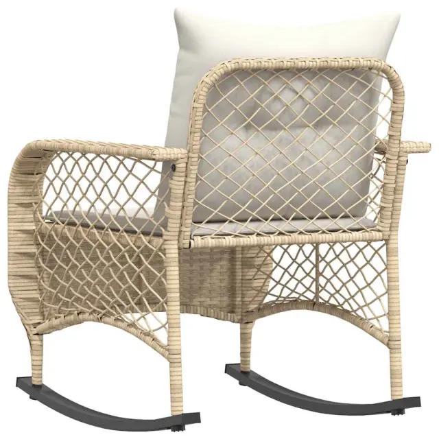 vidaXL Vrtni gugalni stol z blazinami bež poli ratan