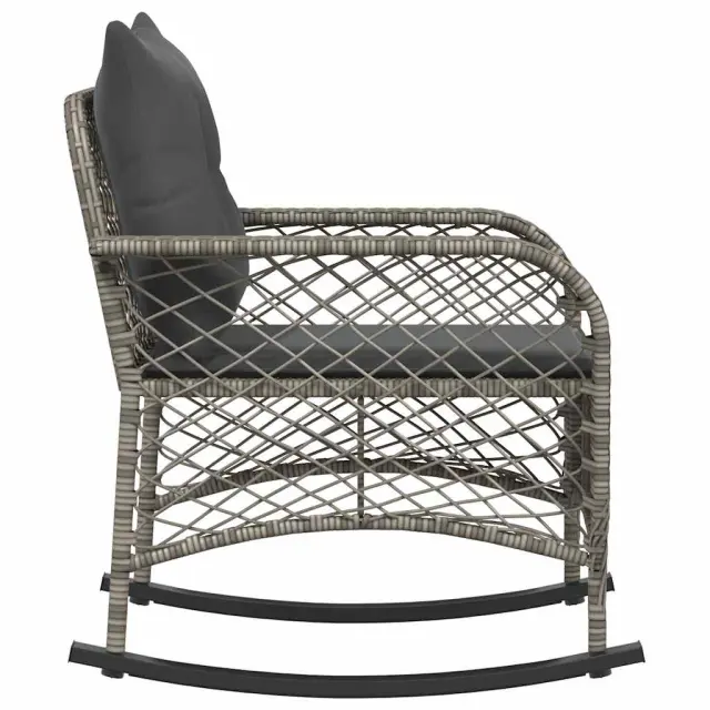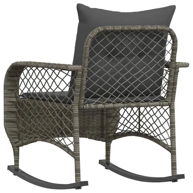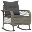 vidaXL Vrtni gugalni stol z blazinami siv poli ratan