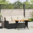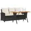 vidaXL Vrtni kavč 3-sedežnik z blazinami&Miza Black Poly Rattan