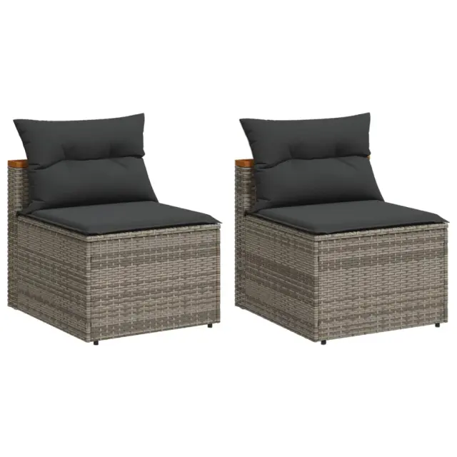 vidaXL Vrtni kavč brez naslonjal z blazinami 2 kosa siv poli ratan