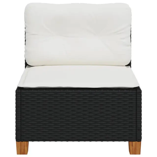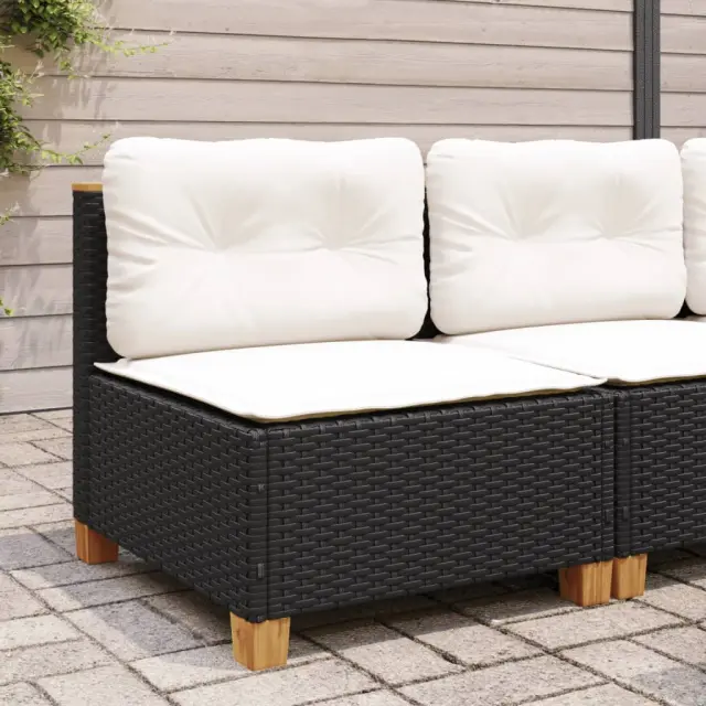 vidaXL Vrtni kavč brez naslonjal z blazinami črn poli ratan