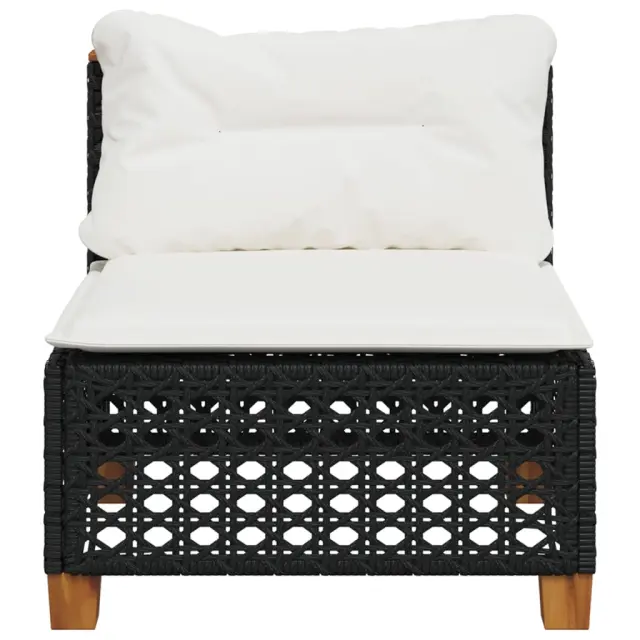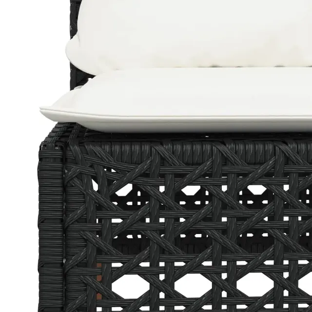 vidaXL Vrtni kavč brez naslonjal z blazinami črn poli ratan