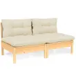 vidaXL Vrtni kavč dvosed s krem blazinami trdna borovina