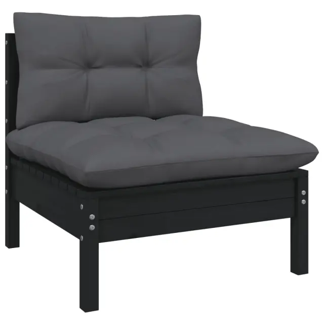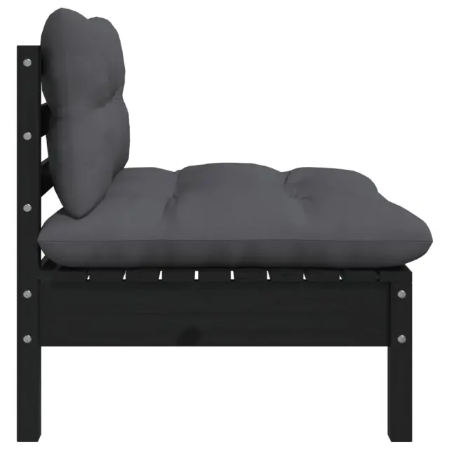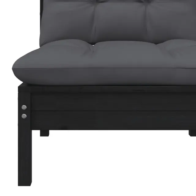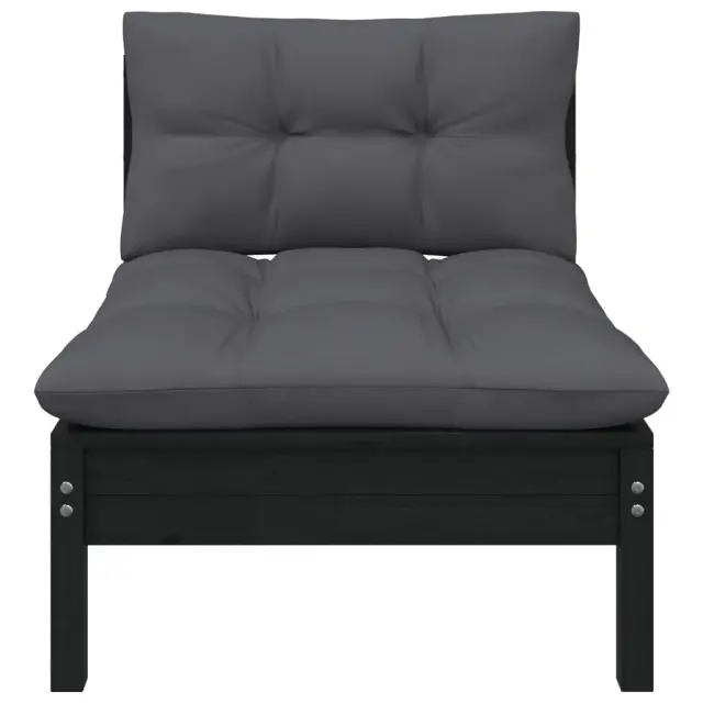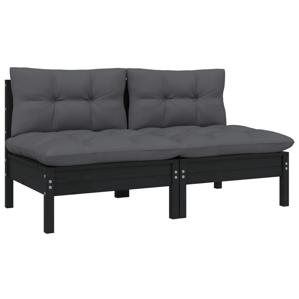 vidaXL Vrtni kavč dvosed z blazinami črna trdna borovina