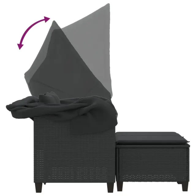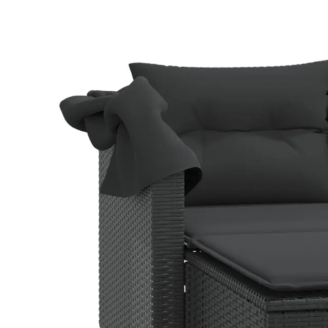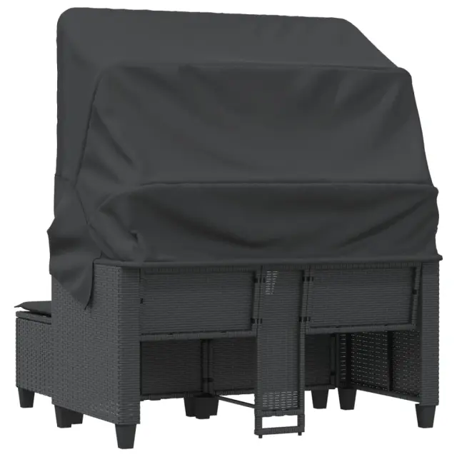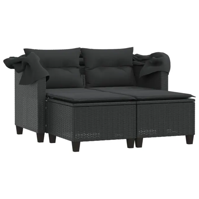 vidaXL Vrtni kavč dvosed s streho in stolčki črn poli ratan
