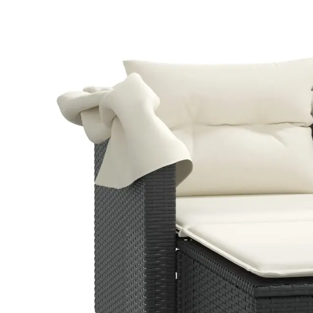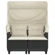 vidaXL Vrtni kavč dvosed s streho in stolčki črn poli ratan