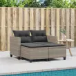 vidaXL Vrtni kavč dvosed s stolčki svetlo siv poli ratan