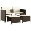 vidaXL Vrtni kavč dvosed z mizico in stolčki rjav poli ratan