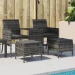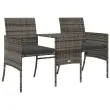 vidaXL Vrtni kavč dvosed z mizico in stolčki siv poli ratan