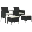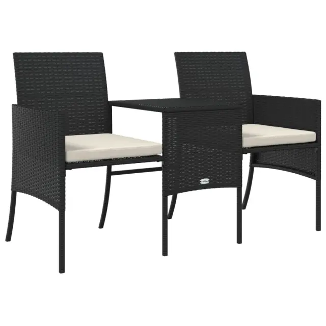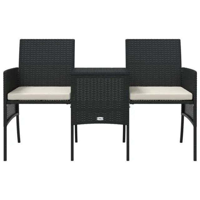 vidaXL Vrtni kavč dvosed z mizico in stolčki črn poli ratan