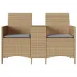 vidaXL Vrtni kavč dvosed z mizo in blazinami bež poli ratan
