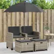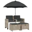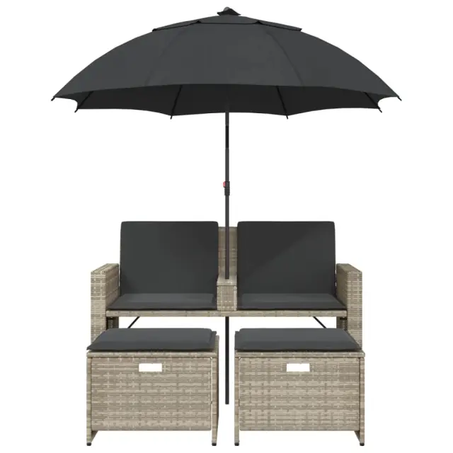 Ta vrtni kavč s senčnikom in stolčki za noge je popoln dodatek za vaše dvorišče, teraso ali verando, saj zagotavlja udoben in privlačen prostor za klepet z družino in prijatelji ali preprosto za sprostitev in uživanje na prostem.