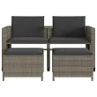 vidaXL Vrtni kavč dvosed z mizico in stolčki siv poli ratan