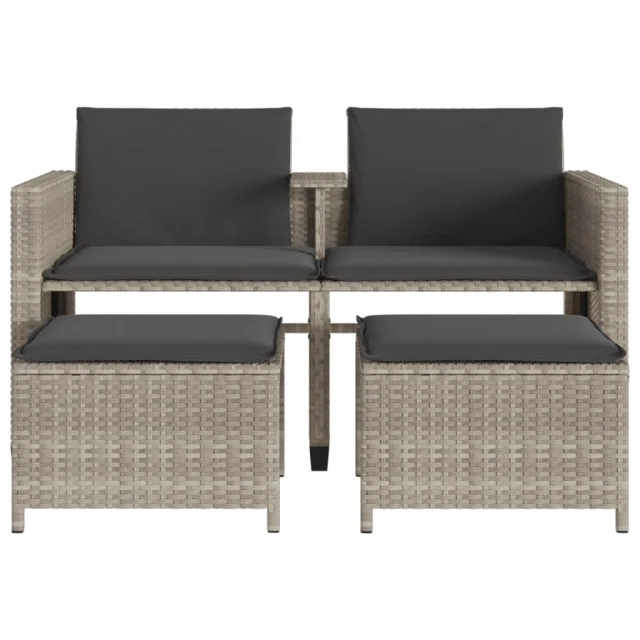 vidaXL Vrtni kavč dvosed z mizico in stolčki svetlo siv poli ratan