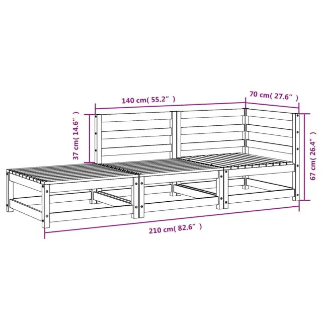 vidaXL Vrtni kavč s stolčkom za noge dvosed bela trdna borovina