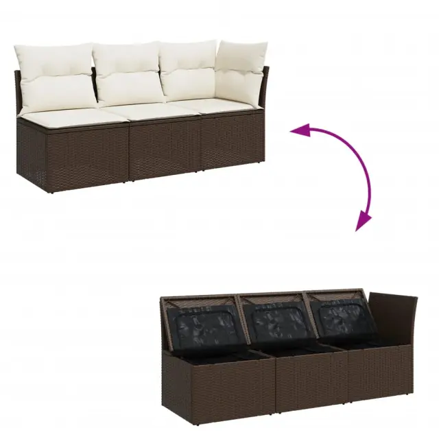 vidaXL Vrtni kavč trosed z blazinami rjav poli ratan