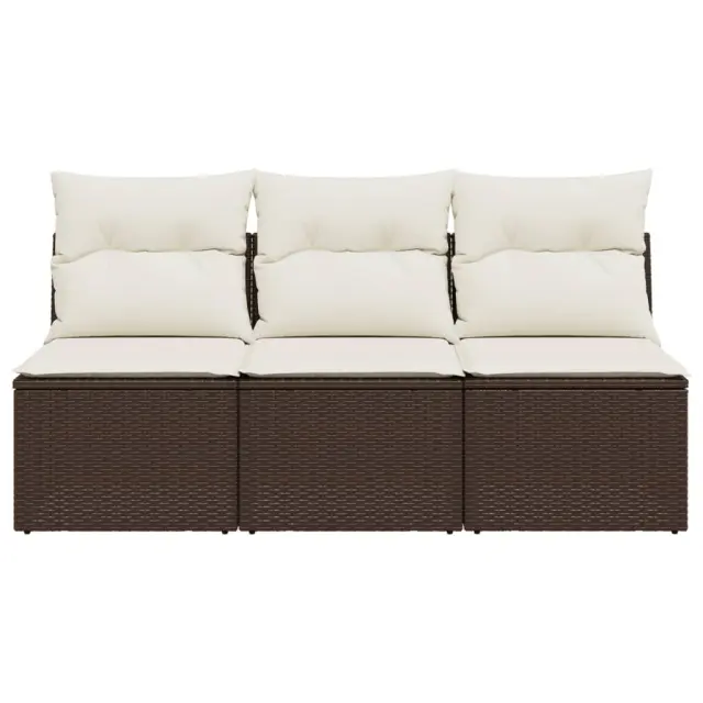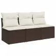 vidaXL Vrtni kavč trosed z blazinami rjav poli ratan