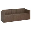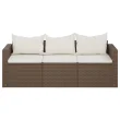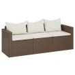 vidaXL Vrtni kavč trosed z blazinami rjav poli ratan