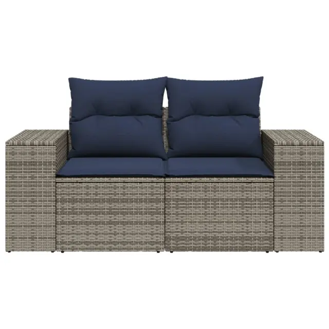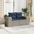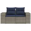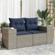 vidaXL Vrtni kavč z blazinami 2-sedežni siv poli ratan