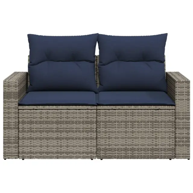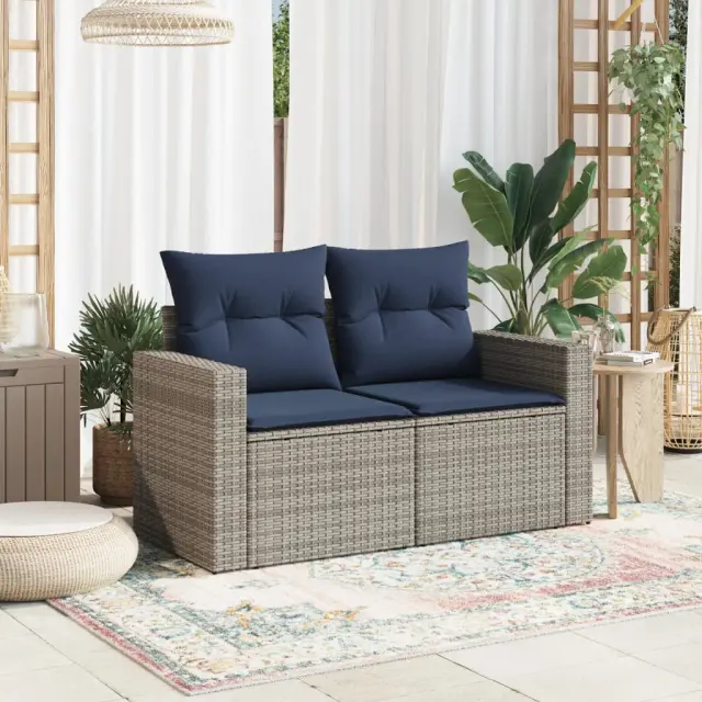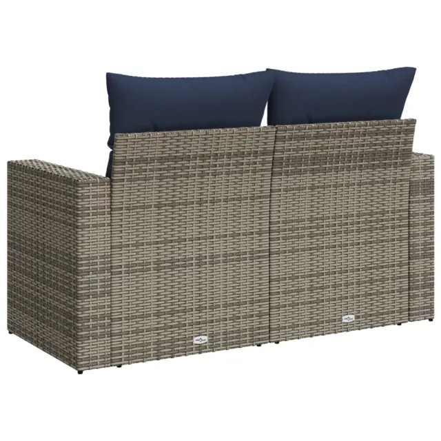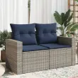 vidaXL Vrtni kavč z blazinami 2-sedežni siv poli ratan