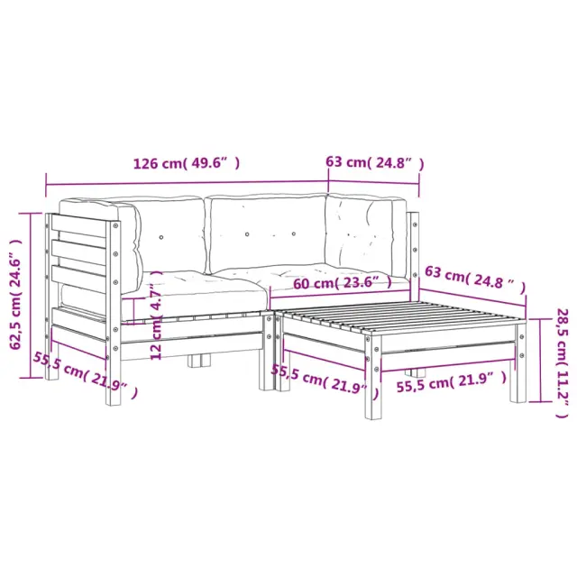 • Dimenzije blazine za sedež: 60 x 60 x 12 cm (D x Š x D)
