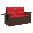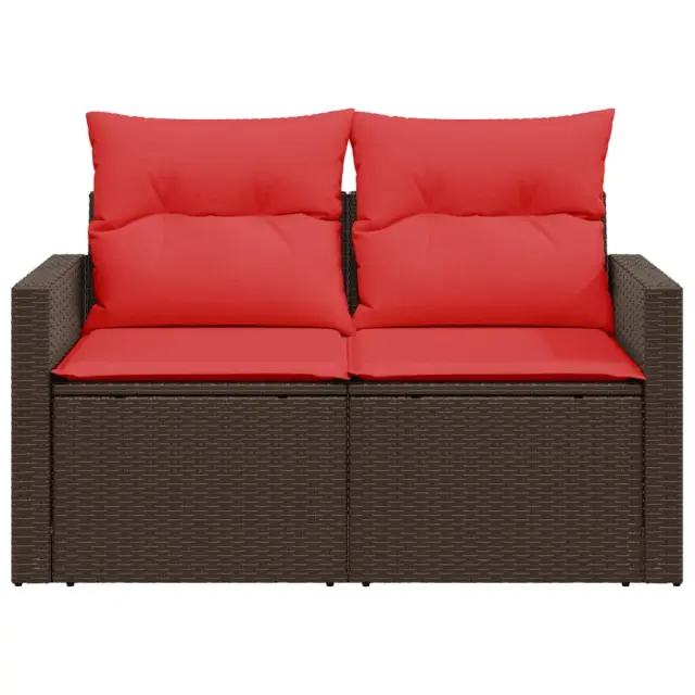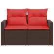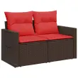 vidaXL Vrtni kavč z blazinami za 2 osebi rjav poli ratan