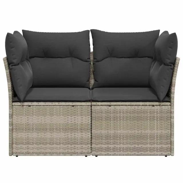 vidaXL Vrtni kavč z blazinami 2-sedežni svetlo siv poli ratan