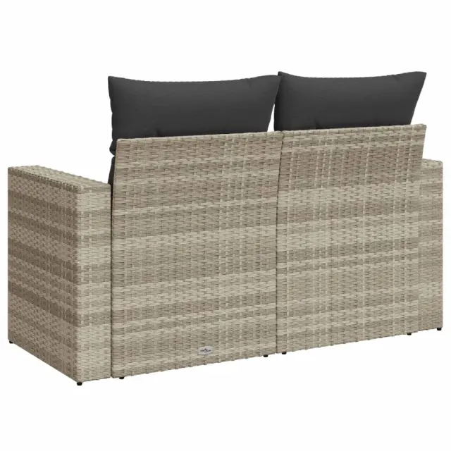 vidaXL Vrtni kavč z blazinami 2-sedežni svetlo siv poli ratan