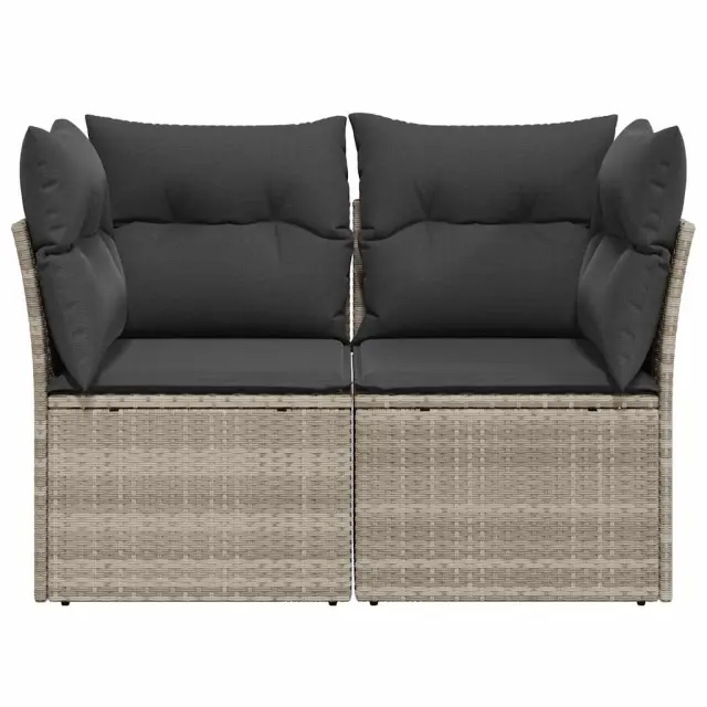 vidaXL Vrtni kavč z blazinami 2-sedežni svetlo siv poli ratan