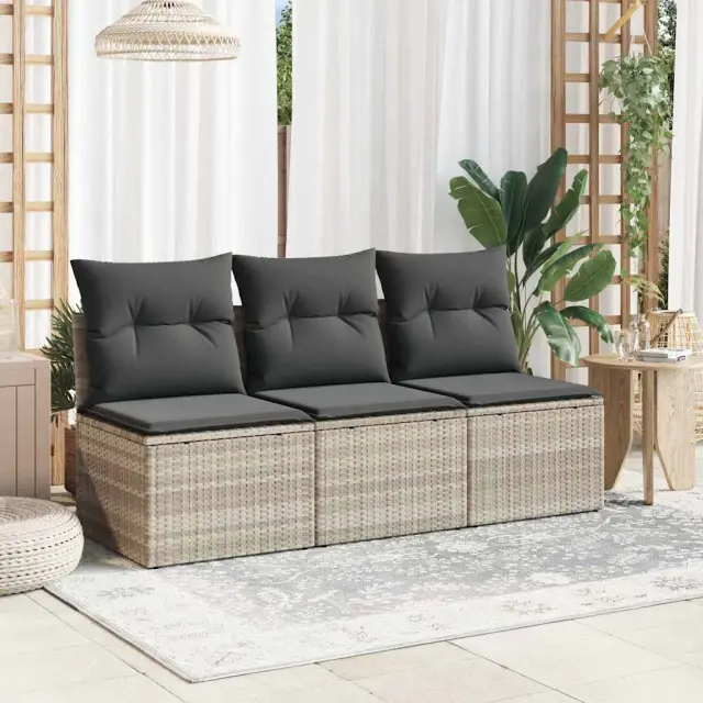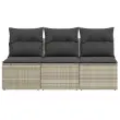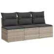 vidaXL Vrtni kavč z blazinami trosed svetlo siv poli ratan
