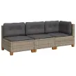 vidaXL Vrtni kavč z blazinami trosed siv poli ratan