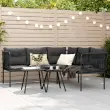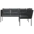 vidaXL Vrtni kavč z blazinami oblika črke L črno jeklo in tekstilen