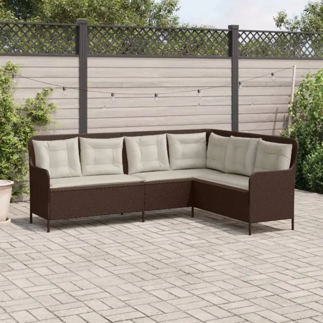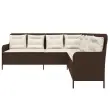 vidaXL Vrtni kavč z blazinami v obliki črke L rjav poli ratan