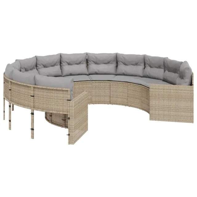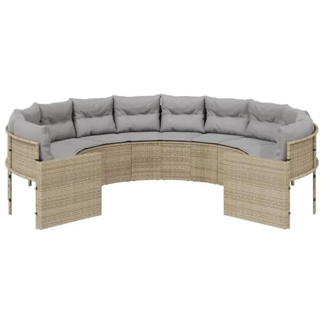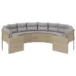 vidaXL Vrtni kavč z blazinami okrogel bež poli ratan